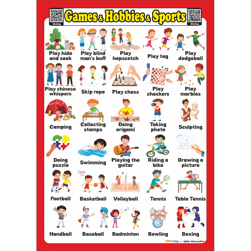 Karekodlu - Seslendirmeli  İngilizce Oyunlar, Hobiler ve Sporlar Poster