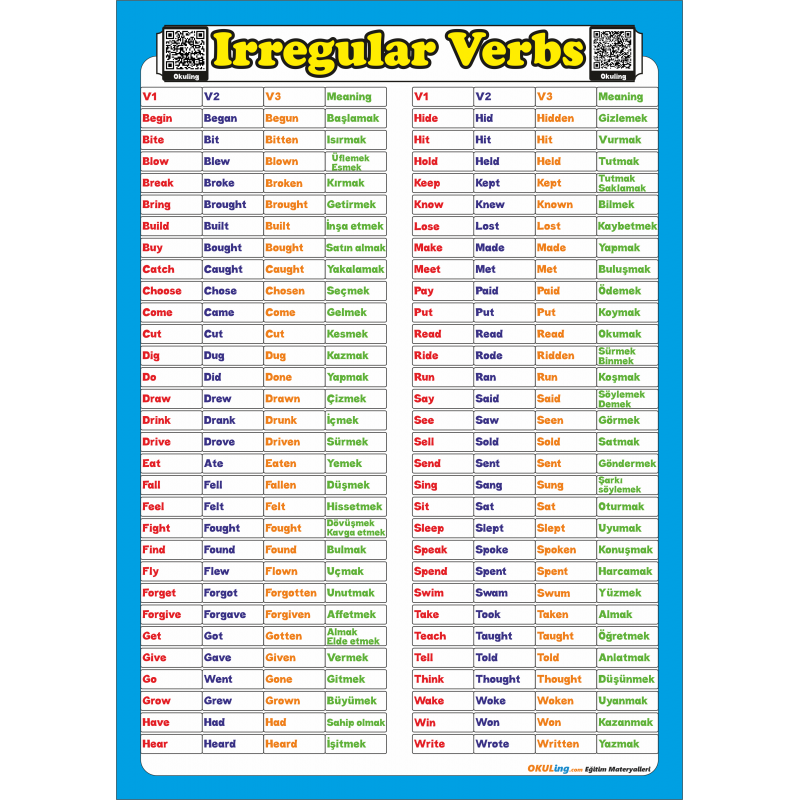 Etiketler: ilkokul, ortaokul, ingilizce, english, poster, afiş, esl, yabancı dil, irregulars, verbs, düzensiz fiiller