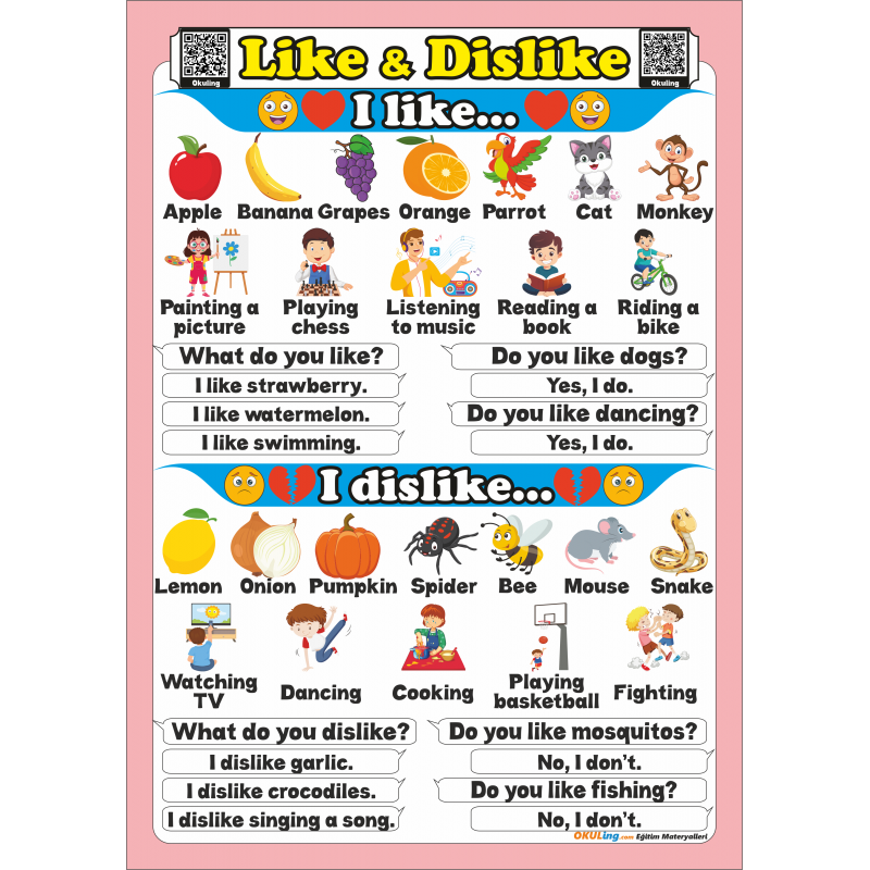 Etiketler: ilkokul, ingilizce, poster, animals, hayvanlar, like, dislike, sevmek, sevmemek, poster, afiş