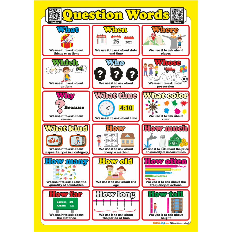Karekodlu - Seslendirmeli Question Words- İngilizce Soru Kelimeleri Poster