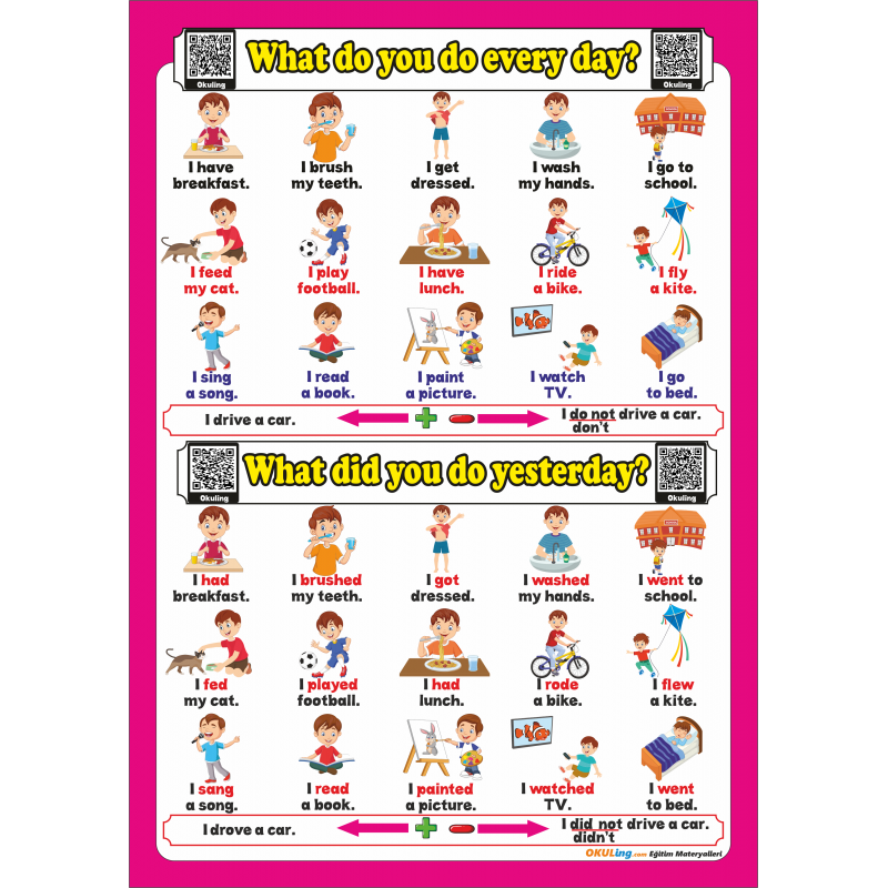 Etiketler: ilkokul, ingilizce, poster, what are you doing, present tense, geniş zaman, what do you doevery day, geçmiş zaman, past tense, poster, afiş